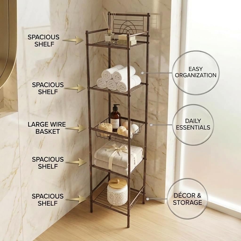 | Model Name | Bath Bliss 5 Tier Storage Shelf in Oil Rubbed Bronze, Freestanding Shelving, Bathroom Organization, Towel & Toiletries Organizer |