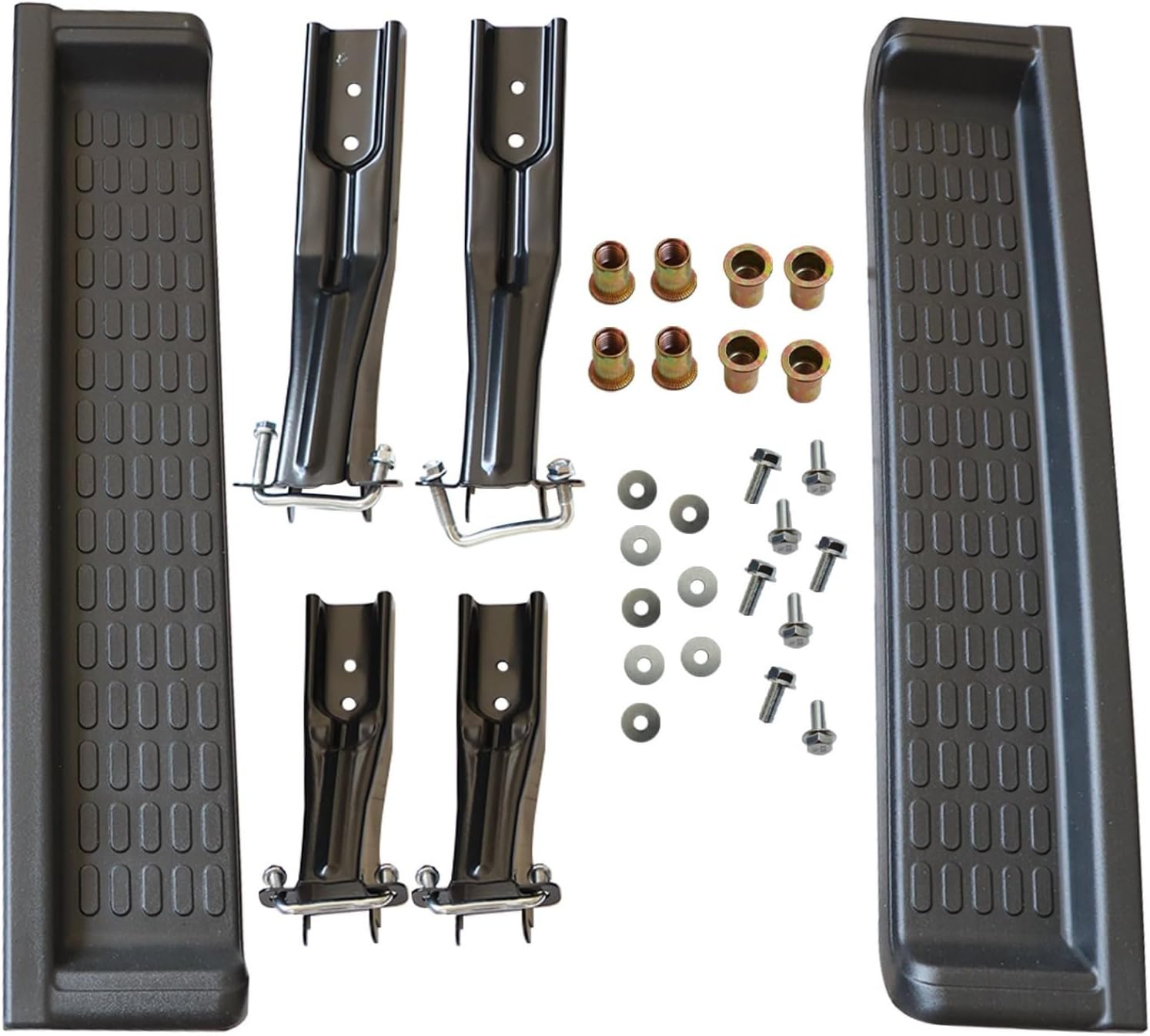 Specification : Features : High Quality Easy and Direct Replacement Stable Performance & Durable Service Fitment : Compatible with Jeep Wrangler TJ & Unlimited 1997 1998 1999 2000 2001 2002 2003 2004 2005 2006 Package Including : 1 Pair of Side Steps and Mounting Hardware