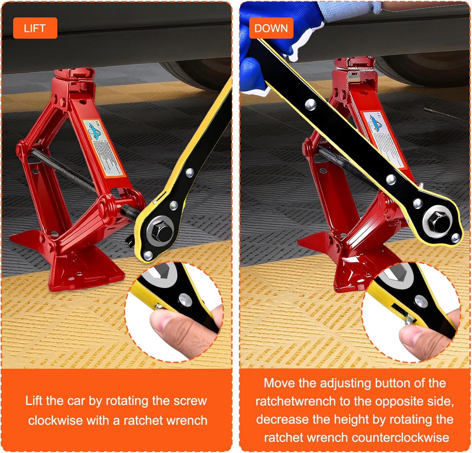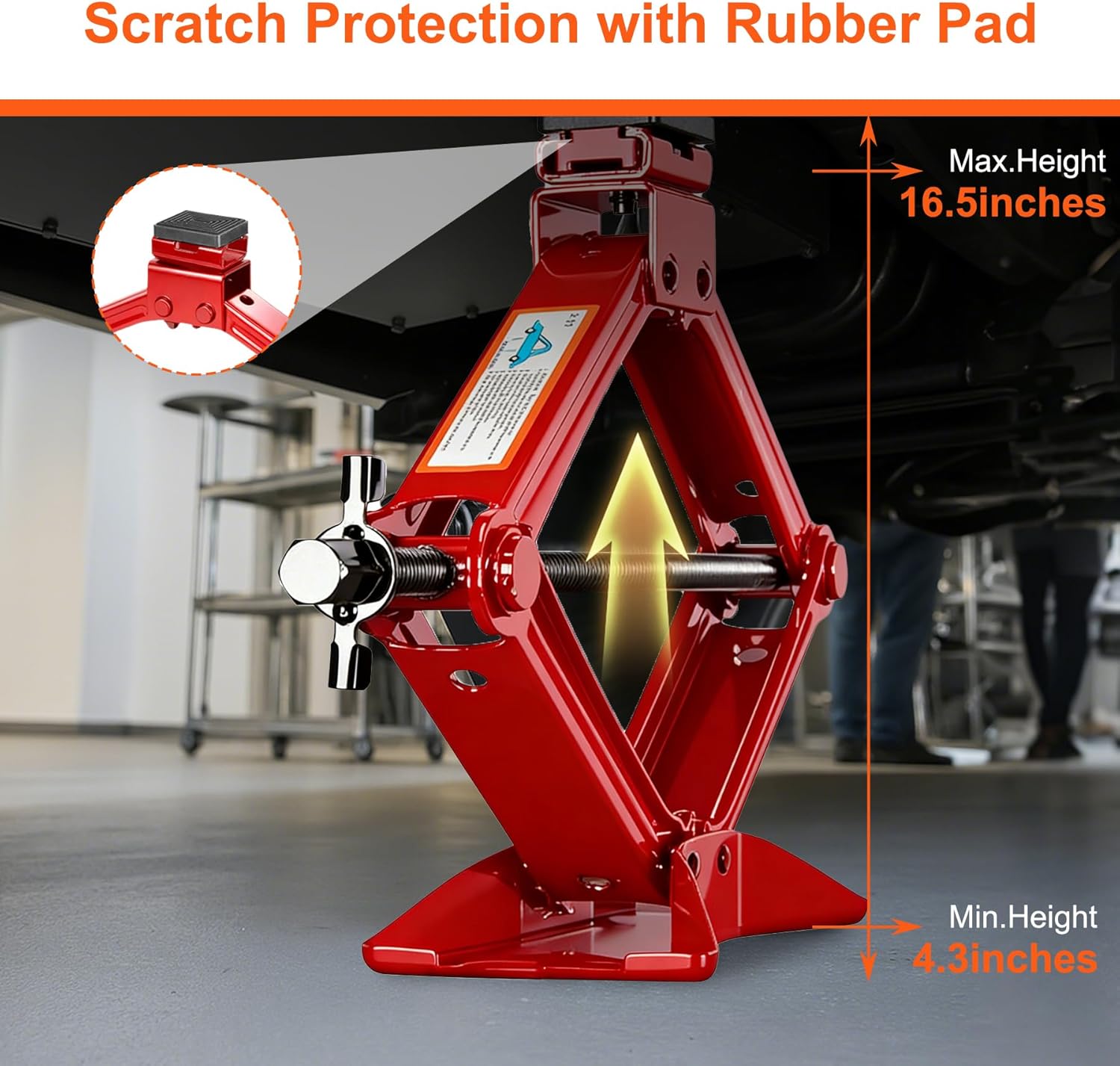 | Included Components | 1x 2.5T Scissor Jack, 2x Rubber Pad, 1x Ratchet Wrench, 1x LugWrench, 1x Pencil Tire Pressure Gauge, 1x Gloves, 1x Storage Bag |