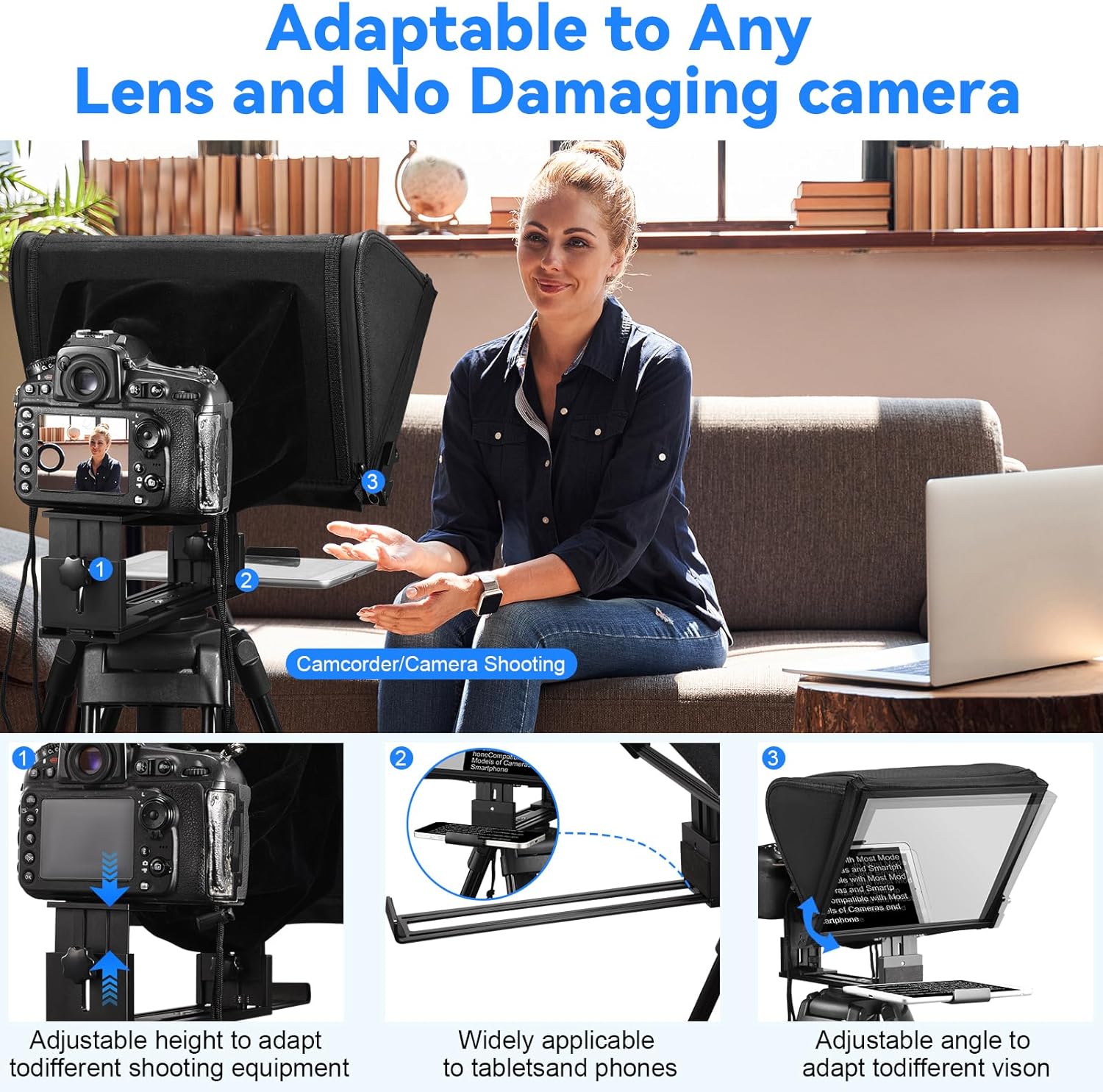 14 inch Aluminum Alloy Teleprompter for iPad Tablet Smartphone DSLR Cameras with Remote Control, Carry Case, APP Compatible with iOS/Android for Online Teaching/Vlogger/Live Streaming